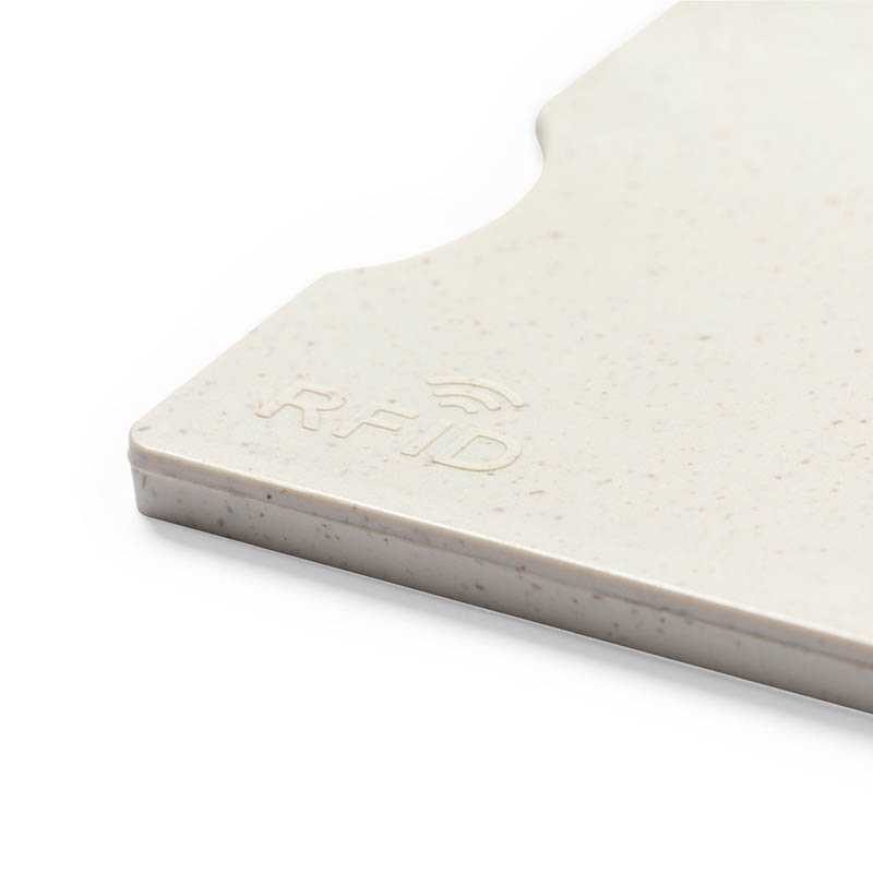 NOVINKA 2025. Nature line card holder made of wheat straw. RFID (Radio Frequency Identification) security technology that keeps card data safe. Notch for easy access to the card, with the RFID and the wheat straw distinctive injected in the mold. Wheat straw encourages the use of natural raw materials, reducing pollutant emissions.