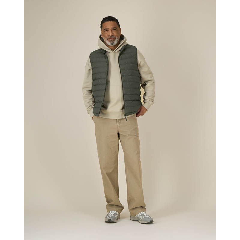 Polstrovaná vesta v zajímavé kombinaci materiálů Přední a zadní díl je prošitý, boky jsou strečový fleece Teplá a prodyšná, vytepleno soronou®AURA (obnovitelná surovina) Zip po celé délce, límec stojáček 2 boční kapsy na zip, 2 vnitřní kapsy Značkové zipy
