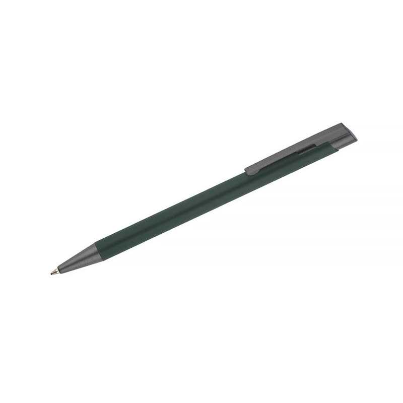 Guľôčkové hliníkové pero v matnej metalickej farbe so špeciálnym otočným mechanizmom, s modrou náplňou.