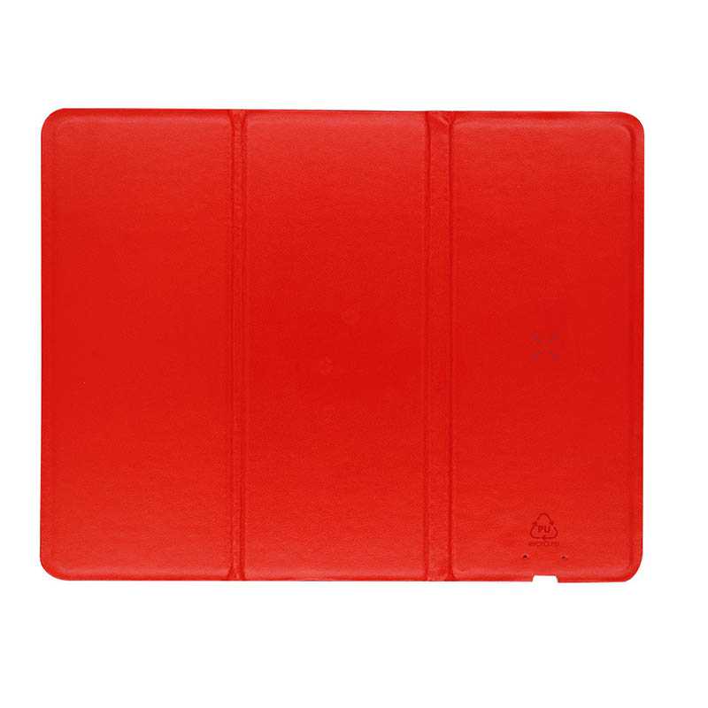 NOVINKA 2025. Foldable mat made of soft recycled PU leather. With integrated 10W wireless charger. Compatible with devices equipped with wireless charging technology. Anti-slip base and multi-position smartphone holder. Available in a variety of plain colours. It includes Recycled PU logo.The recycled PU leather stands out for its resistance and elasticity. This recycled and recyclable material is a sustainable option that rescues the fibres discarded in the manufacturing processes, thus minimising the waste of material and contributing to reduce the environmental impact, while keeping its original properties.Manufactured according to RoHS standards and in compliance with the following safety requirements:Overheating protection system.Over-charge protection system.Blocking system to prevent short circuits.