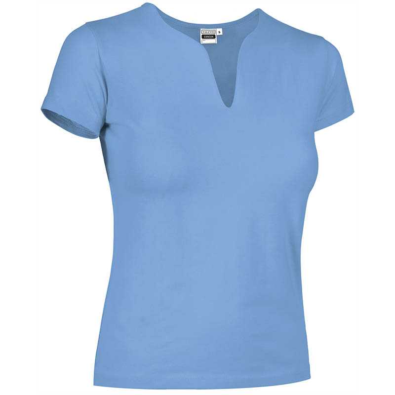 Women´ Short Sleeve Slim Fit T-Shirt with and Teardrop-Shaped Neckline Opening. Made of Ring Spun cotton knitted fabric for a soft and comfortable feel, with elastane to enhance mobility. Double stitching on the bottom hem and sleeves for added strength and durability. Suitable marking methods: screen printing, embroidery, transfer printing, vinyl application. Ideal for multiple uses: promotional clothing, workwear, merchandising, events, casual wear, and more.