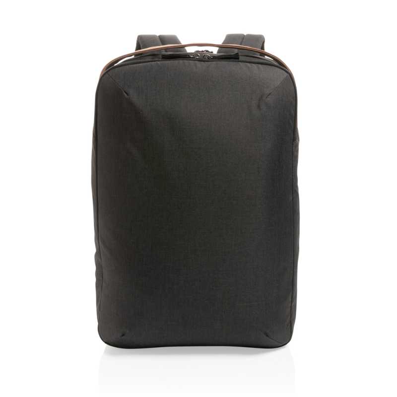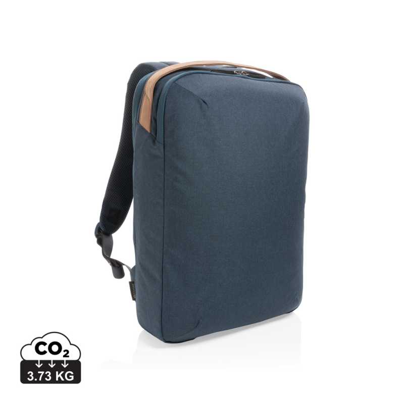 Praktický batoh do kancelárie aj mimo ňu. Jeho eleganciu podtrhuje moderný minimalistický dizajn. Hlavný oddiel s priestorom pre až 15,6" notebook a 2 otvorenými priehradkami na drobnosti. Vrchné ucho z PU, polstrované popruhy aj zadná časť pre pohodlné nosenie. Vonkajšie aj vnútorné časti sú vyrobené z recyklovaného polyesteru. Vrátane skenovateľnej zložky AWARE ™ garantujúcej obsah recyklátu . Na výrobu bolo využité 9,01 500ml PET fliaš . Z výťažku každého predaného produktu z kolekcie Impact prispievame 2% na podporu iniciatívy Water.org.