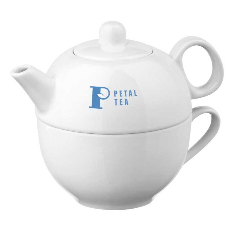Porcelánový čajový set s kanvicou s objemom až 430 mL a šálkou s objemom až 220 mL. Dodávané v krabici. Kanvicou: 109 X 115 mm | Krabička: 225 x 118 x 21 mm