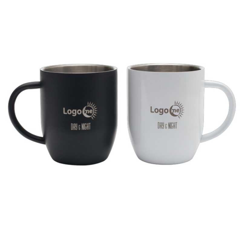 Hrnček s objemom 350 ml s dvojitou stenou z nerezovej ocele a vnútornou stenou z vylepšenej ocele 18/8 s uškom a povrchom v lesklom laku. Tvar je podobný klasickým keramickým hrnčekom. Len ručné umývanie.