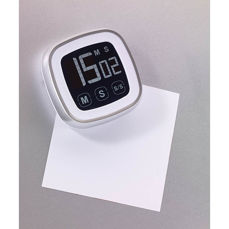 Kitchen timer TOUCH´N´COOK: displays up to 99 min / 59 sec, tone after set time expires, simple operation of touch buttons on display, with magnet and put-up hinge on the back side