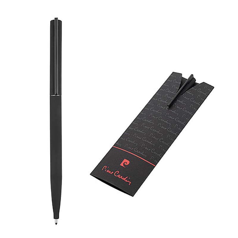 Elegantné guľôčkové pero Pierre Cardin v čiernej farbe, ktoré na prvý pohľad zaujme svojim veľmi tenkým vzhľadom. Telo pera má na dotyk veľmi príjemnú, gumovú povrchovú úpravu a kovový klip. Obsahuje kvalitnú nemeckú modrú náplň s hrotom 1 mm. Balené v luxusnom vrecku, dodávané s certifikátom pravosti. Odporúčaná technológia tlače: laser L1, UV tlač. Maximálna veľkosť tlače: 35 × 6 mm. Rozmery: guľôčkové pero 0,8 × 13,5 cm; balenie 5,5 × 15,5 cm. Kartónové množstvo v ks: 60.