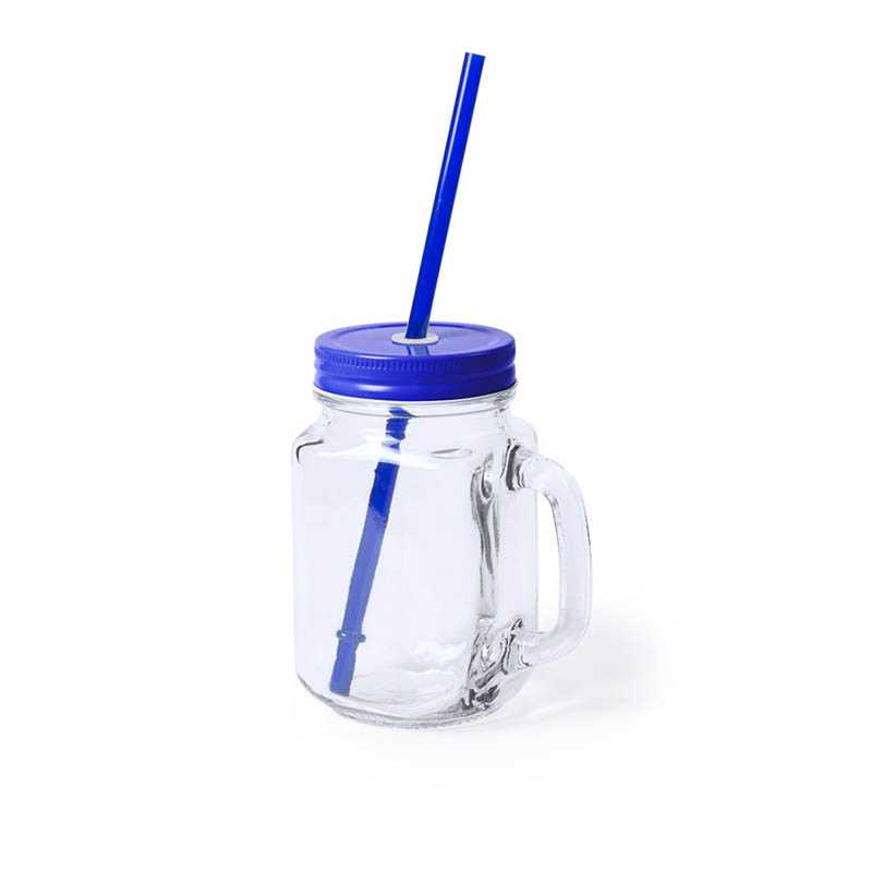 NOVINKA 2025. 500ml, multi purpose glass jar with cover and straw in bright tones. With metal cover and presented in an attractive design box.Instruction manual available in Spanish and English.