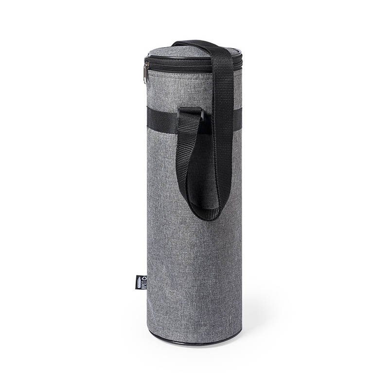 NOVINKA 2025. Nature line cooler for bottles up to 1.5l in durable 300D RPET polyester, made from recycled plastic to encourage the reuse of plastic waste and contribute to the sustainability of the planet. Zip closure, with comfortable, adjustable, shoulder strap. Aluminum isothermal inside with RPET emblem on outside label.