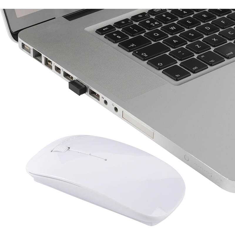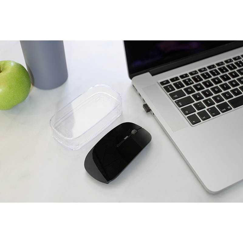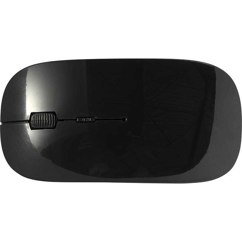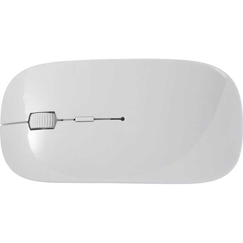 ABS wireless optical computer mouse, 2,4Ghz. An energy saving mouse with hidden Nano receiver and scroll wheel in the middle. Batteries included.
