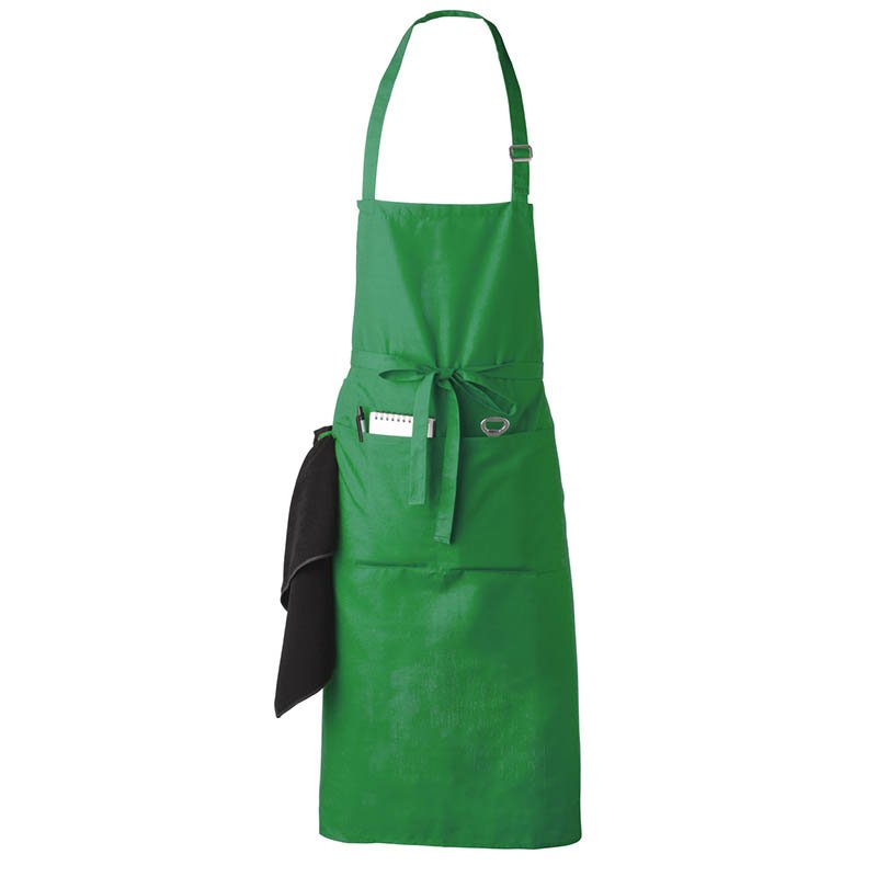 Nastavitelná kuchyňská zástěra se 2 předními kapsami z 10% bavlny a 90% polyester, 190 g/m2.