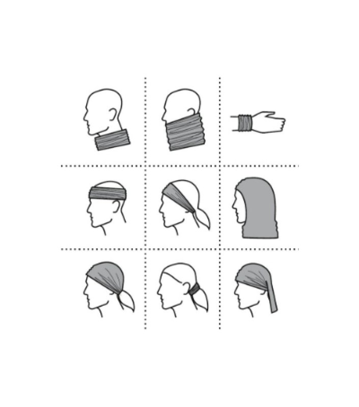 tubulárny strih, rýchloschnúci materiál, viacúčelové využitie (varianty zobrazené na balení), 50 × 26 cm.Single Jersey, 100 % polyester.