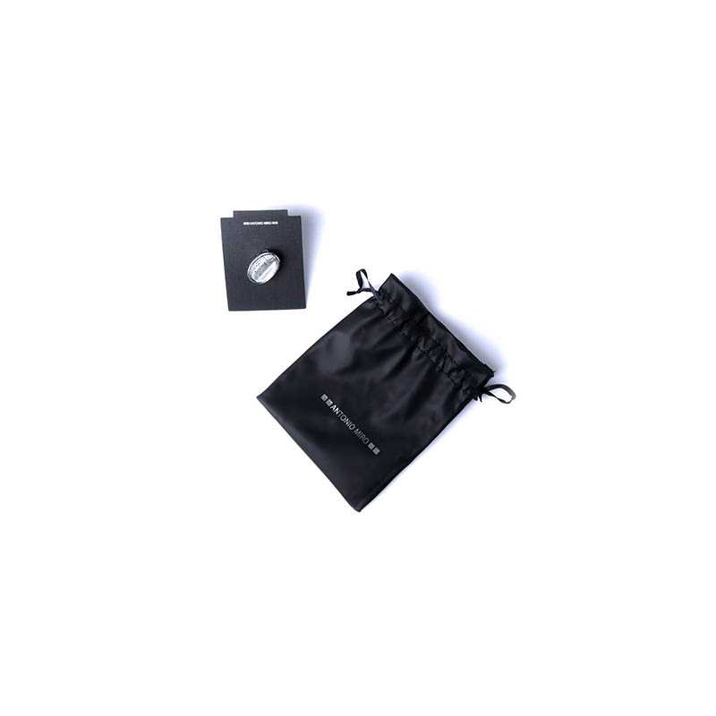 NOVINKA 2025. Adjustable ring by Antonio Miró in metal with resin inlay. Presented in PU sleeve with the brand logo.