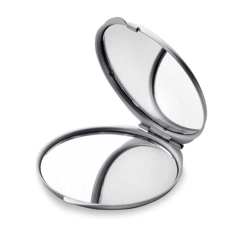 Dvojdielne kompaktné kozmetické zrkadlo z kovu, praktické, na použitie kdekoľvek potrebujete. Zrkadlo je ideálne pre personalizáciu formou Domingu. Dodávané v darčekovej krabičke. Krabička: 67 x 75 x 9 mm