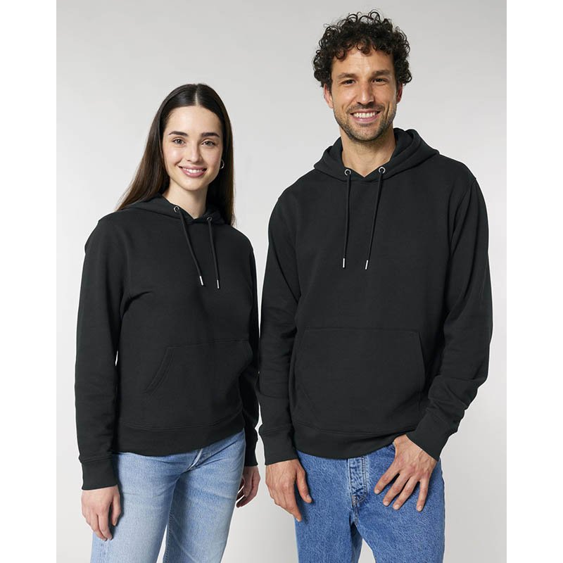 Mikina s kapucňou a česanou podšívkou. Kapucňa z dvojvrstvového materiálu so širokou šnúrkou. Vonkajšie vrecko vpredu, 2x2 rebrovanie na okraji rukáva a spodnom leme. Moderný strih. Materiál: 80% organická bavlna 20% recyklovaný polyester. Gramáž: 280 g/m2. Certifikáty: GOTS, Fairtrade Cotton, Nordic Swan Ecolabel, Oeko-Tex