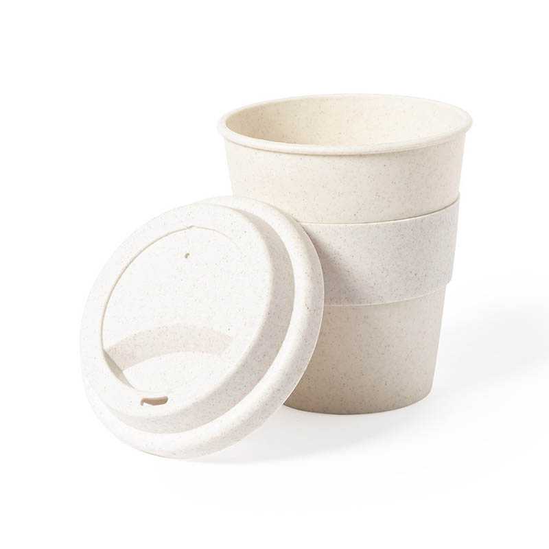 NOVINKA 2025. Cup made in veined PP with a capacity of 350ml. It is ideal for your desk, table, or any surface where you can enjoy your favorite drink. With anti-burn band and dispenser lid in TPR. Food Grade certification, guaranteeing safety when food is in contact with the material used to manufacture the product.