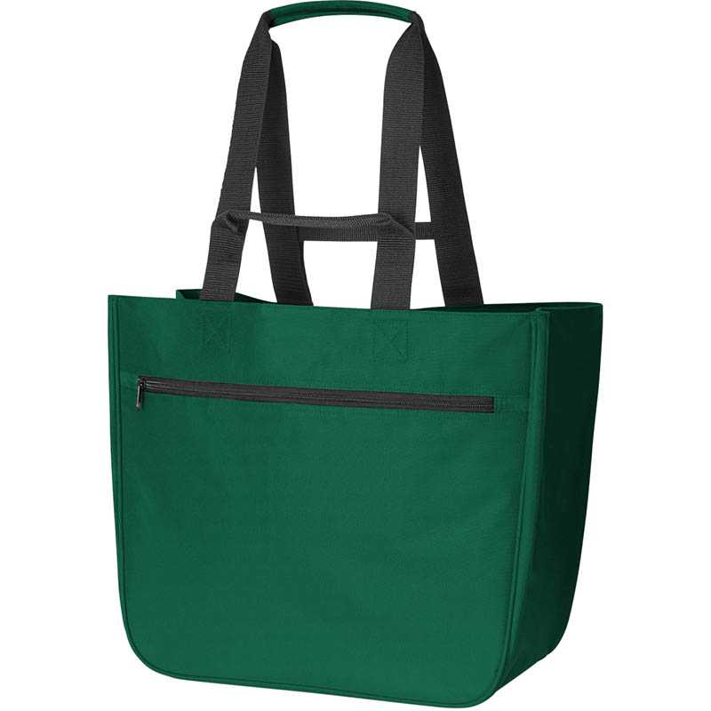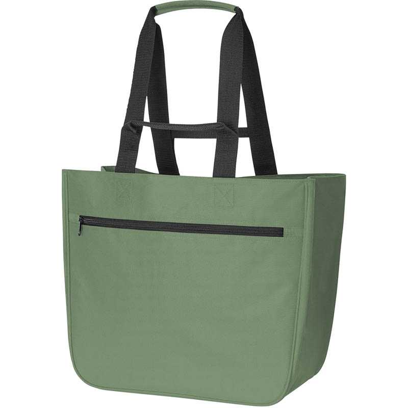 Flexibilní, prostorná nákupní taška pro mnohostranné použití, velká hlavní přihrádka s nožičkami na dně; přední kapsa na zip; systém přenášení s dvojitými uchy a polstrovaná manžeta pro