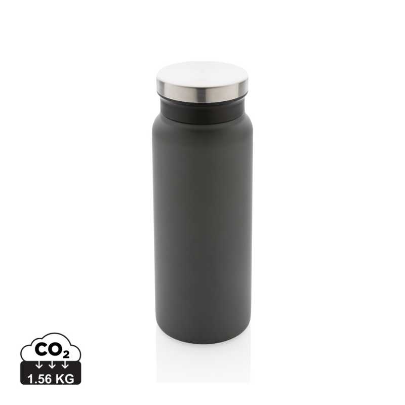 Nepriepustná termo fľaša s bezpečným skrutkovacím uzáverom so širokým hrdlom pre ľahké čistenie a plnenie. Dvojstenná vákuová izolácia uchová nápoj horúci po dobu až 5h a studený až 15h. Vyrobené z RCS recyklovanej nehrdzavejúcej ocele. RCS (Recycled Claim Standard) je globálny štandard, ktorý umožňuje overiť použitie recyklovaného materiálu v produkte naprieč celým dodávateľským reťazcom. Podiel použitého recyklovaného materiálu vzhľadom na celkovú váhu produktu: 77%. Vnútorná časť viečka z plastu zaisťuje nepriepustnosť. Bez BPA. Objem: 600 ml. Balené v FSC kraftovej krabičke.