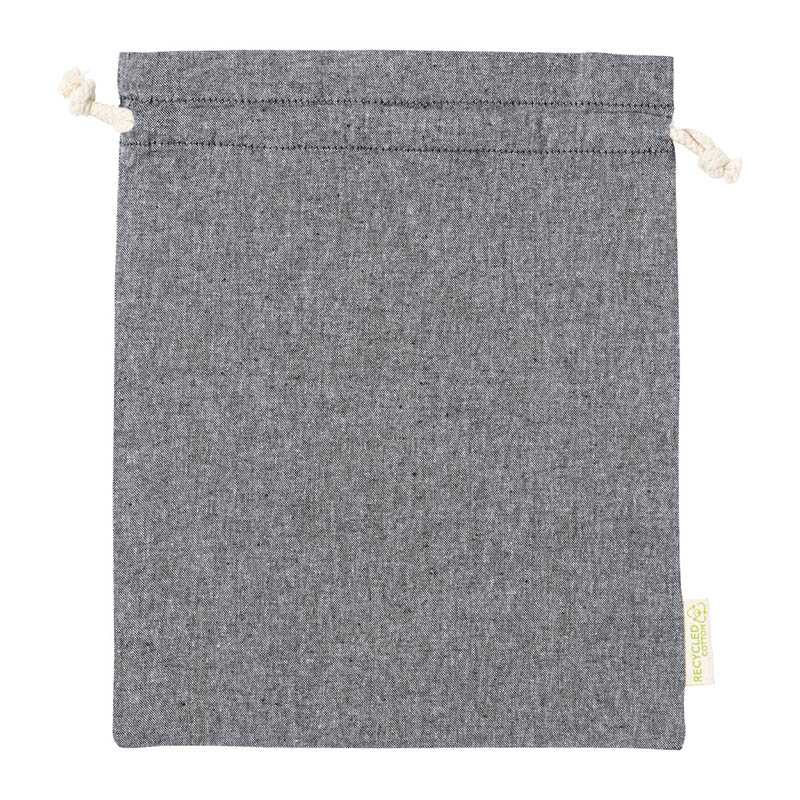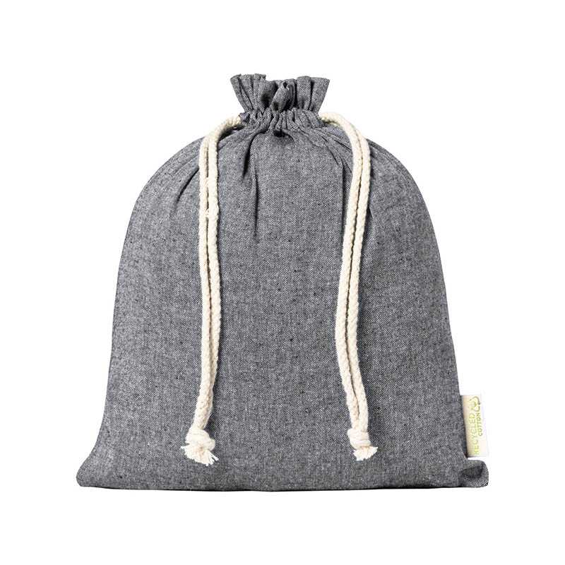 Opätovne použiteľné vrecko z recyklovanej bavlny so sťahovacou šnúrkou. 100% recyklovaná bavlna, 120 g/m2.
