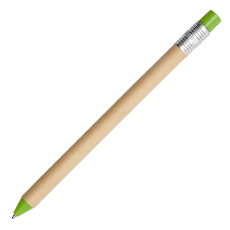 Guľôčkové pero v tvare zastrúhanej ceruzky z recyklovaného kartónu s prvkami z recyklovateľného plastu, modrá náplň.