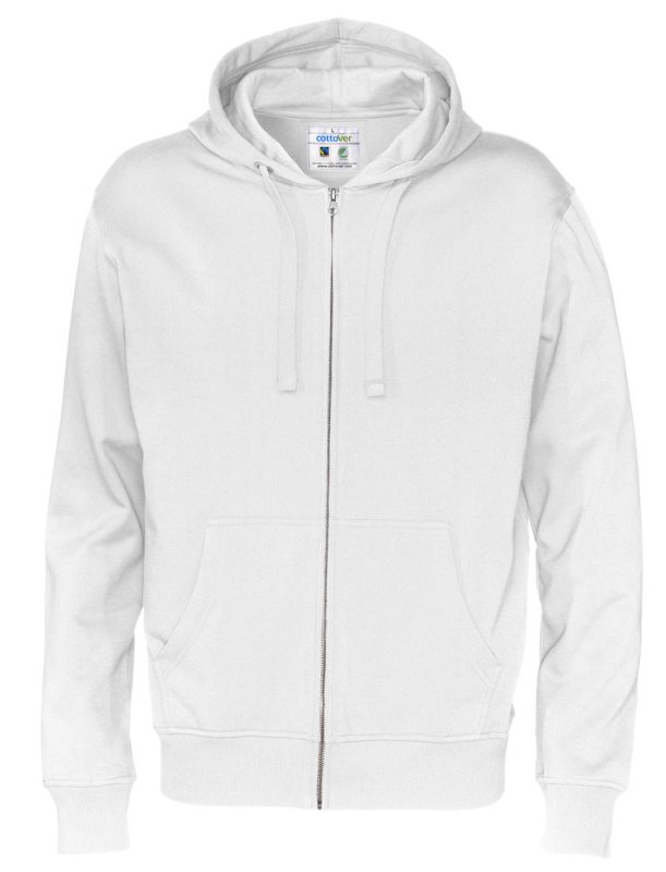 Celozipsová mikina s kapucňou a česanou podšívkou. Kapucňa so širokou šnúrkou, dve vonkajšie vrecká vpredu, 2x2 rebrovanie na konci rukávov a spodnom leme. Moderný strih. Dostupná v pánskej a dámskej verzii. Materiál: 80% organická bavlna 20% recyklovaný polyester. Gramáž: 280 g/m2. Certifikáty: GOTS, Fairtrade Cotton, Nordic Swan Ecolabel, Oeko-Tex