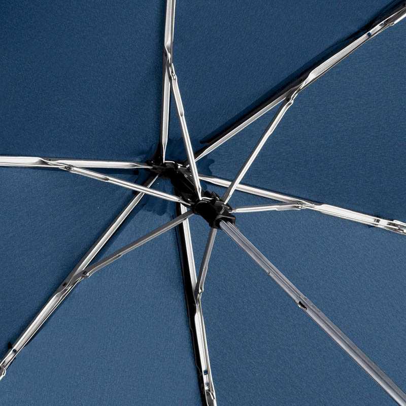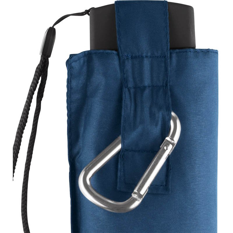 High-quality Windproof PLUS system for maximum frame flexibility in stormy conditions, chromed steel shaft, extra lightweight cover, flat Soft-Touch handle with promotional labelling option, carry case with practical snap hook for fixing on backpack or bag, suitable for handbag due to its extreme light weight, space-saving extra flat execution