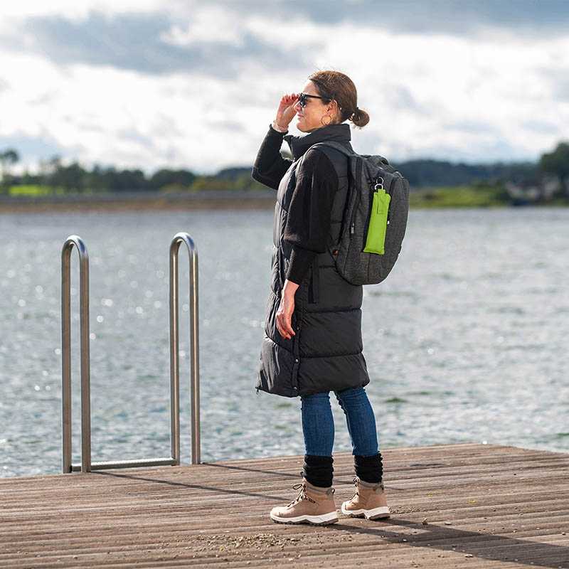 Easy to handle thanks to sliding safety runner, high-quality Windproof PLUS system for maximum frame flexibility in stormy conditions, polyester pongee cover material made of recycled plastics, with waterSAVE® label on the closing strap (with new deliveries), handle made of recycled plastic material with promotional labelling option