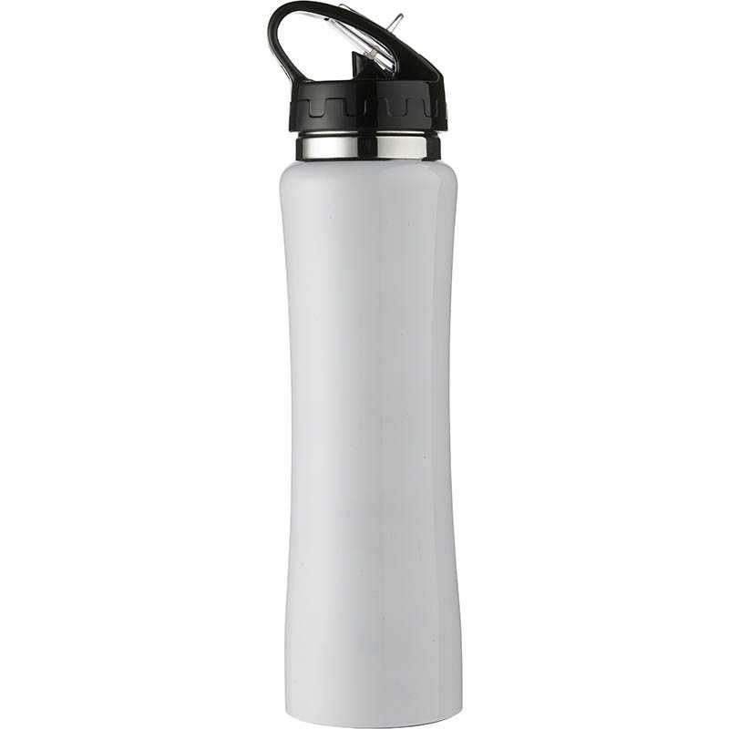 Stainless steel thermos bottle (500 ml), double walled. With plastic cap, foldable drinking spout and interior straw. Packed in a white gift box.