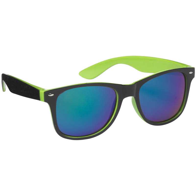 Striking sunglasses with mirrored lenses. With two colours in the frame. The colour of the glass matches perfectly with the colour in the frame. With UV400 protection (according to European standards).