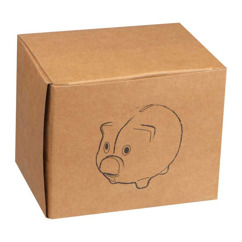 NOVINKA 2025. Lovely piggy bank with the silhouette of a little pig, combining design and functionality and turning saving into a joyful experience, by watching through its methacrylate window how the savings rise. Presented individually in a kraft design box.