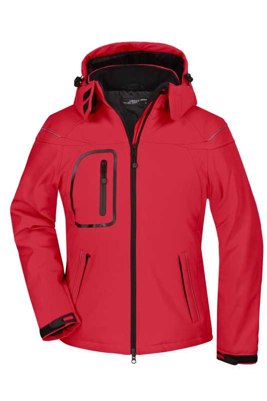 Módní zimní softshellová bunda James & Nicholson pro dámy..Vnější materiál: 95% polyester, 5% elastan .Podšívka: 100% polyester .Vycpávka: 100% polyester.3 vrstvy funkční tkaniny s TPU membránou .Větru a vodě odolná (5.000 mm vodního sloupce), prodyšná .O