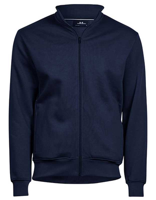 70 % kruhově dopřádaná bavlna / 30 % polyester. Klasický kardigan s dlouhým zipem z česané teplákoviny s vysokou gramáží. Dvojitě prošívané elastické manžety. Žebrovaný zvýšený límec a pas. Dvě přední kapsy na zip. Elastan ve všech žebrováních. 3vrstvá tk