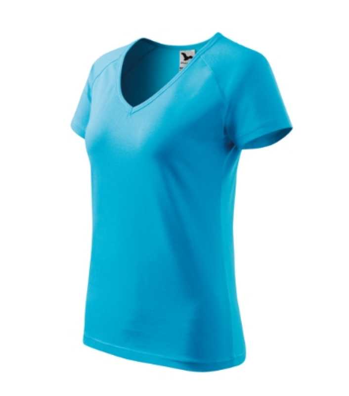 V-neck t-shirt in modern style for ladies. Slub tricot fabric made from ecologically grown cotton. Colors: 100 white, 120 grey melange, 474 dusty pink, 514 summer blue, 600 navy, 704 moss green, 900 black 100% Organic Cotton 160 g/m2 XS-XXL