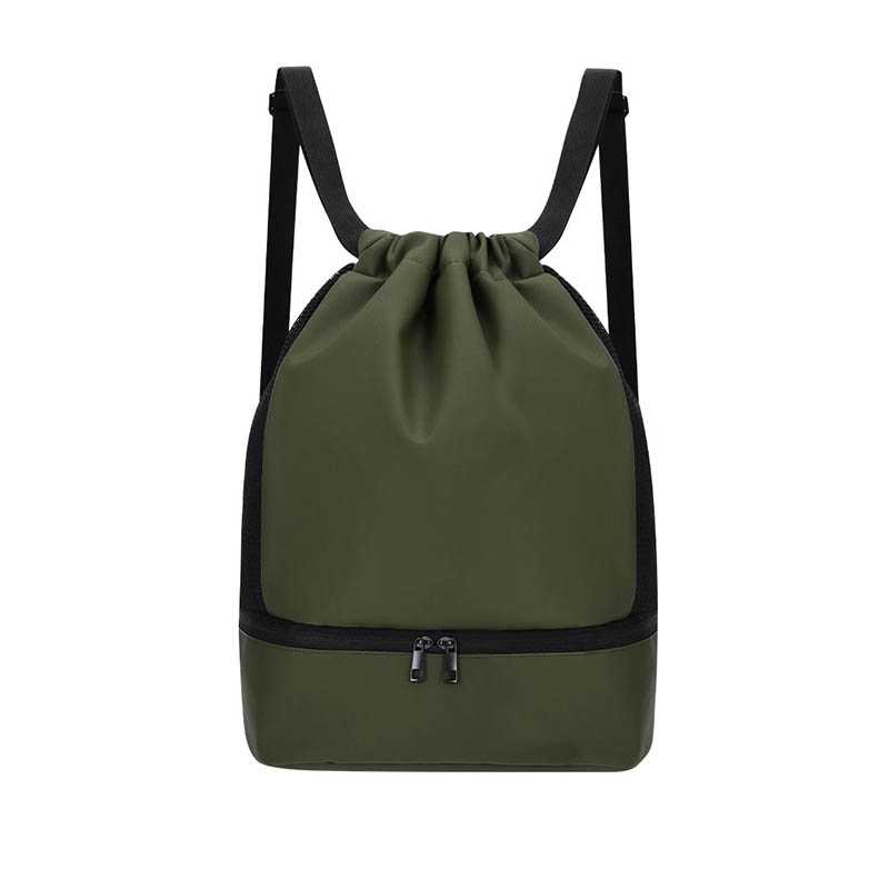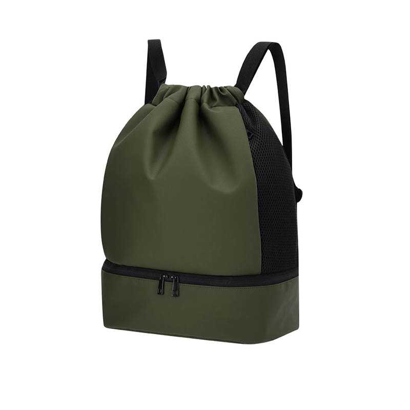 NOVINKA 2025. Backpack made from soft PU with a main compartment with a drawstring closure and a small interior pocket with zipper closure. Includes a shoe pocket at the base with double zipper closure and front pockets with quick-access zipper closures. With breathable sides and adjustable shoulder straps.