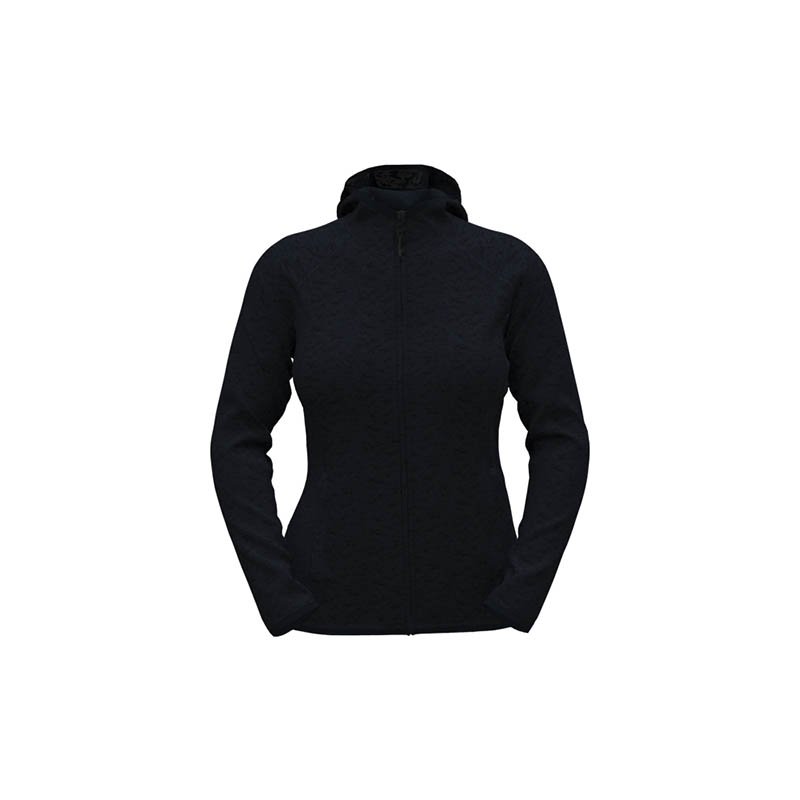 "Lady’s cotton – polyester sweater - Special dry fabric - Lined hood - Full zip with waterproof cover - Raglan sleeves - Two zip-pocket - Contrasting details - Colored tape inside collar - Ribbed cuffs and band at the waist"