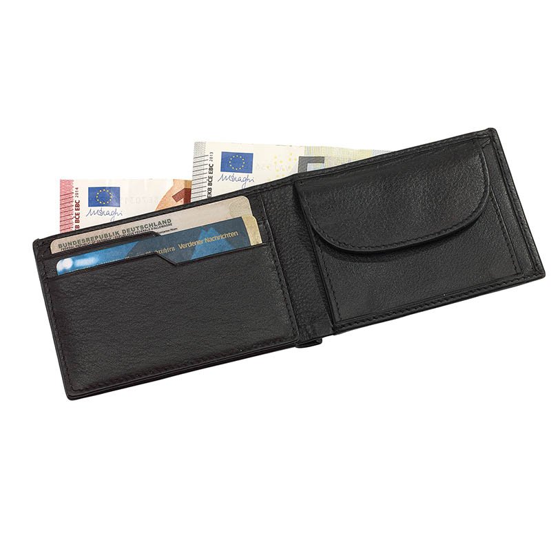 Genuine leather purse TRAPANI with various slip-in pockets and a pocket for coins with a press stud closure
