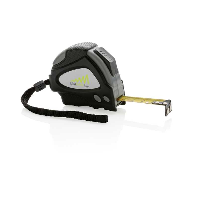 Kompaktný zvinovací meter ABS s príchytkou a pútkom. Zvinovací meter s dĺžkou 5 m a šírkou 19 mm a s háčikom.