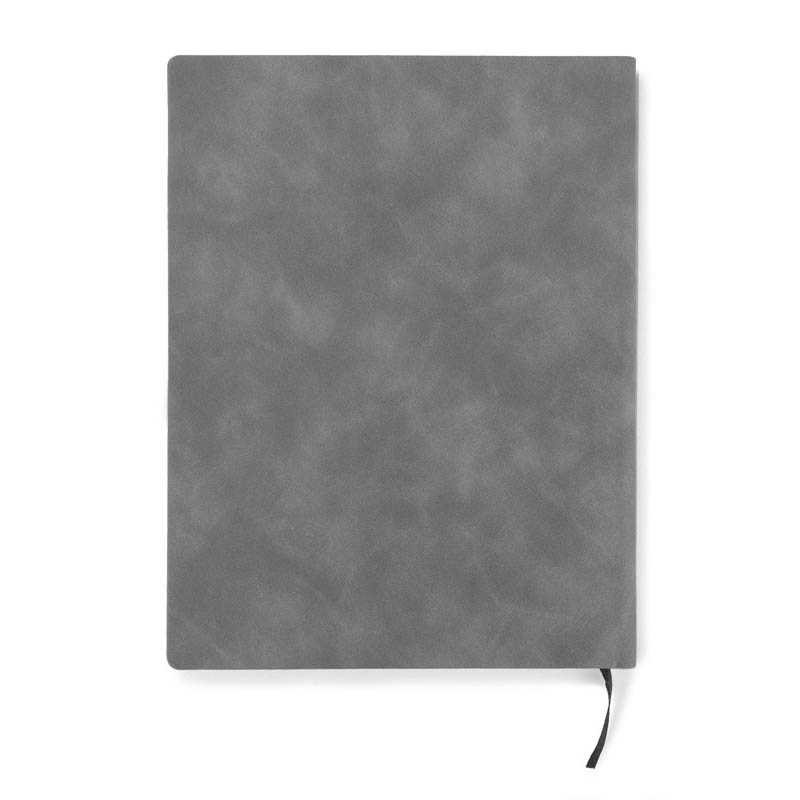 Semišový zápisník velikosti A5 barevně ladícím elastickým uzavíráním, označovací stužkou a smyčkou na pero. gramáž 80 g/m2, 80 listů krémového papíru. Také nabízí pružnou kapsu na zadní straně na malé poznámky. Zabaleno v dárkovém balení.