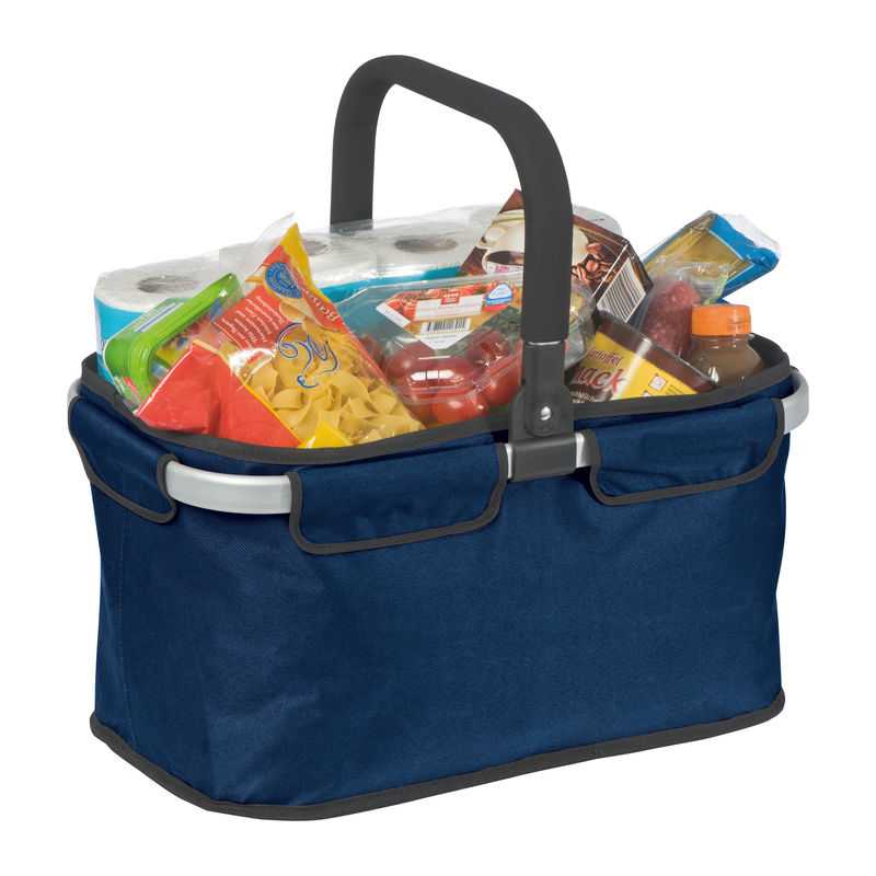 Praktický nákupný košík vyrobený z polyesteru so sklápateľnou hliníkovou rukoväťou s integrovaným žetónom pre nákupné koše. Kôš možno ľahko zložiť a má nosnosť 15 kg.