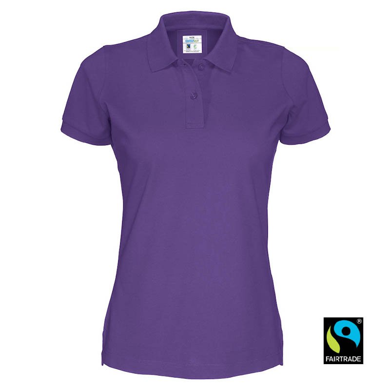Ladies' polo pique in stretch quality made of organic Fairtrade cotton with elements of elastan for a better fit. Shaped v-neckline, ribbed collar and cuff, straight sleeve and stitch