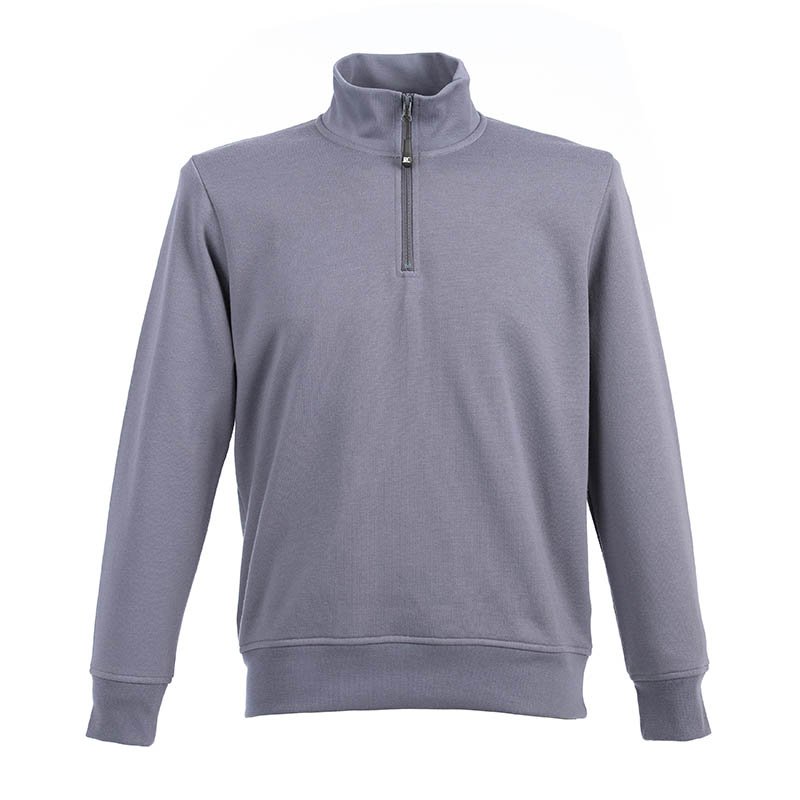 80 % bavlna/20 % polyester.Kartáčovaný flís.Vsadené rukávy.Výstrih na zips so páskou pri krku v rovnakej farbe.Rebrované manžety a lem.Certifikát STANDARD 100 podľa OEKO-TEX®N° CQ1007/7, IFTH.Pri výrobkoch v tmavosivej farbe sa môžu vyskytnúť rozdiely vo farebných odtieňoch.