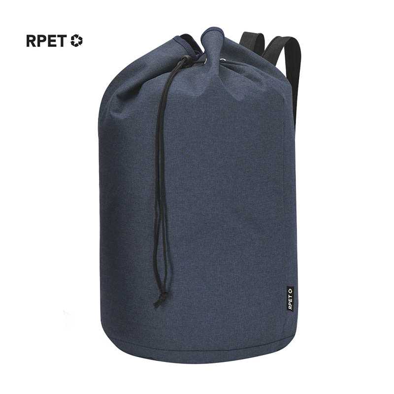NOVINKA 2025. Multi-purpose large capacity bag made of durable RPET 600D polyester. Top closure with cord with adjustment accessory and reinforced metal rings. 2 in 1 back shoulder strap with zipper closure for single or double shoulder transport. With RPET label on the tag.RPET material is made from recycled plastic to promote the reuse of plastic waste and help the sustainability of the planet.