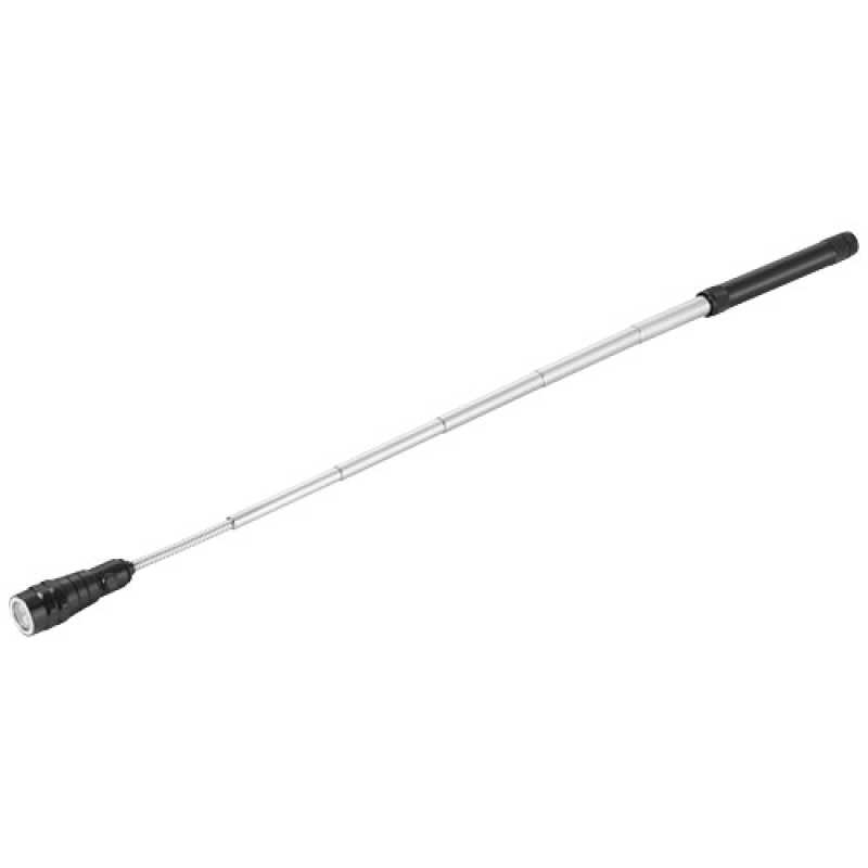 Výsuvná hliníková svítilna s 3 LED světly, magnetem a klipem. Přiloženy 4 baterie LR44. Maximální délka 57 cm.