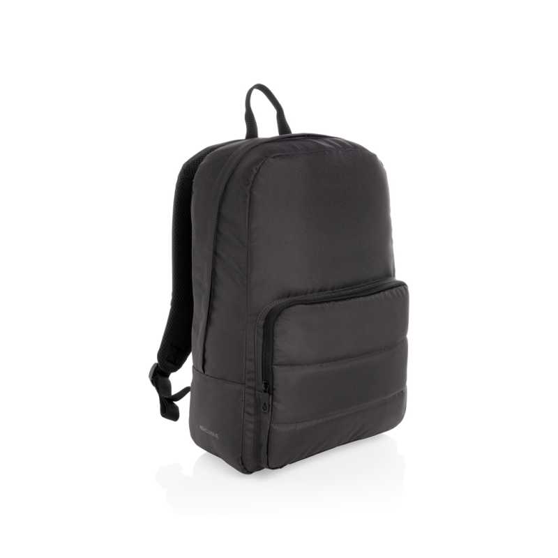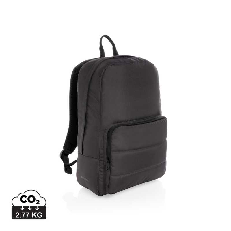 NOVINKA 2025. Batoh na notebook z recyklovaného polyesteru 600D s vysokou hustotou, predná časť z recyklovaného polyesteru 900D s vysokou hustotou s vodeodolnou vrstvou a podšívkou z recyklovaného polyesteru 210D. Hlavná priehradka s polstrovanou priehradkou na notebooky do 17.3" a priestranné predné vrecko s niekoľkými vnútornými vreckami. Bočné vrecko ideálne na nosenie fľaše a chrbát s extra polstrovaním a popruhom na vozík. Kapacita až 24 l. 300 x 400 x 180 mm