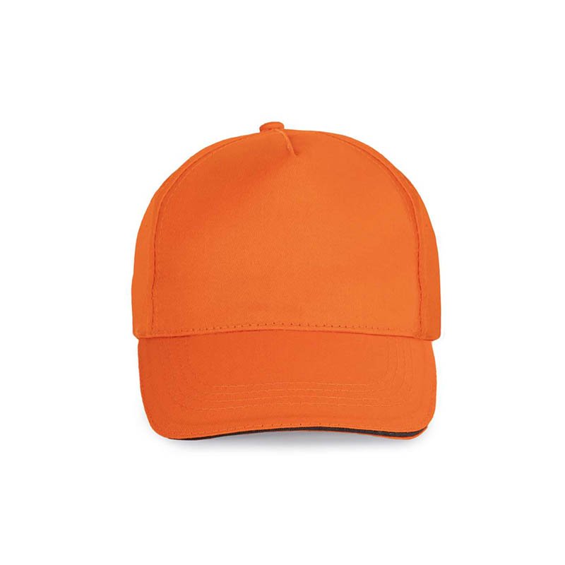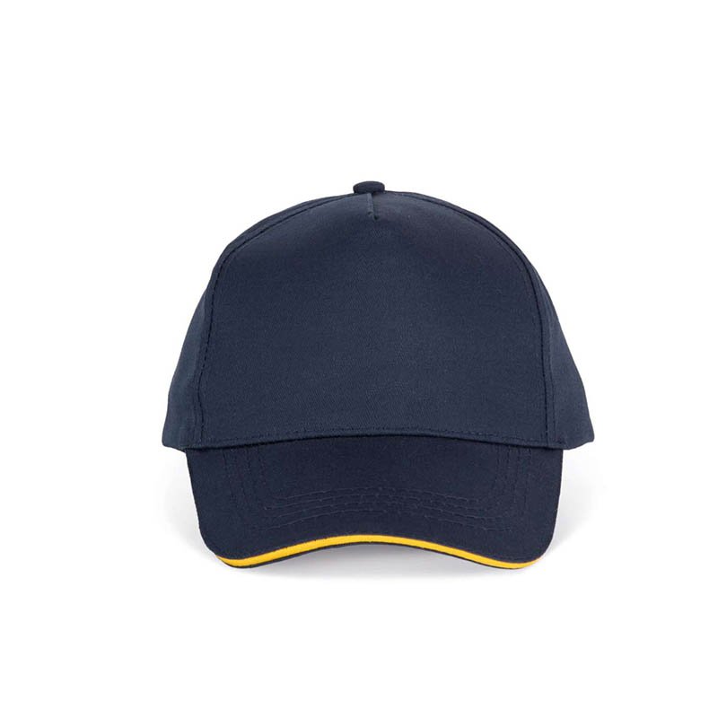 100 % bavlnený keper.5-panelová čiapka s kontrastným sendvičovým šiltom a bavlneným potítkom.Nastavenie veľkosti so zapínaním na suchý zips.