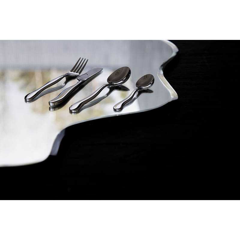 Our new cutlery in stainless steel is inspired by the movement of waves. The round shapes create a softness which in contrast to the sharp parts create a fantastic dynamic. Available in gift packaging with 16 pieces. Fabrics: Stainless steel Weight: 222g Measurement: 21x22/20x2,5/19,5x4/15x3cm Packing: Giftbox