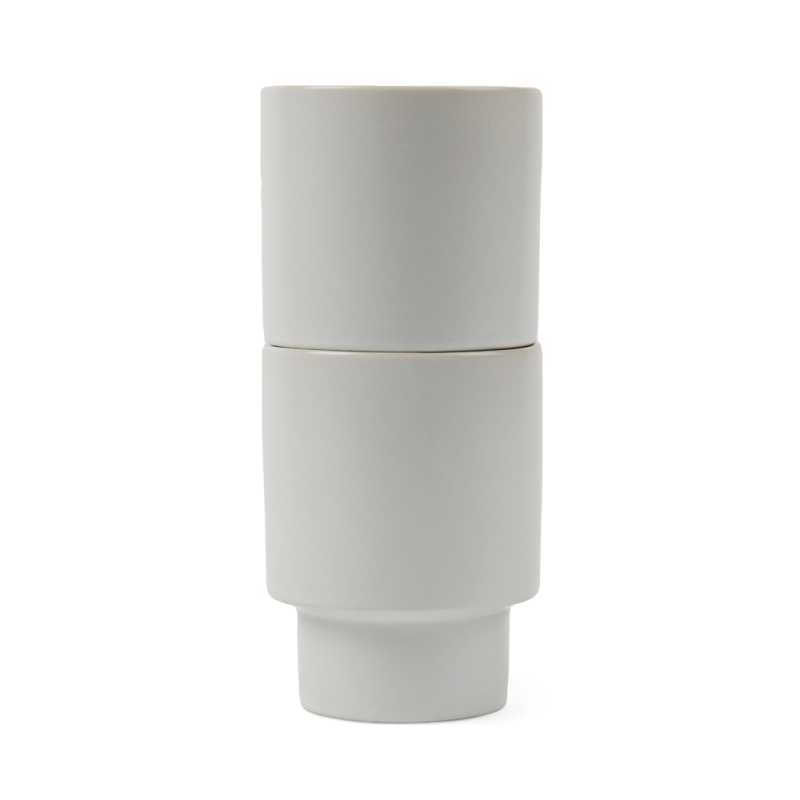 Coffee mug in a 2-pack with a characteristic relief. The coffee mug is part of the Coffee & More series, developed by Sagaform in collaboration with designer Margot Barolo. The series' design is a flirtation with the direct, playful, and straightforward language of the 70s. The series is available in various parts, patterns, and colors and looks best in a delightful mix of everything! Microwave and dishwasher safe. Fabrics: Stoneware Weight: 580g Measurement: H 9 cm, 30 cl Packing: Giftbox Designer: Margot Barolo