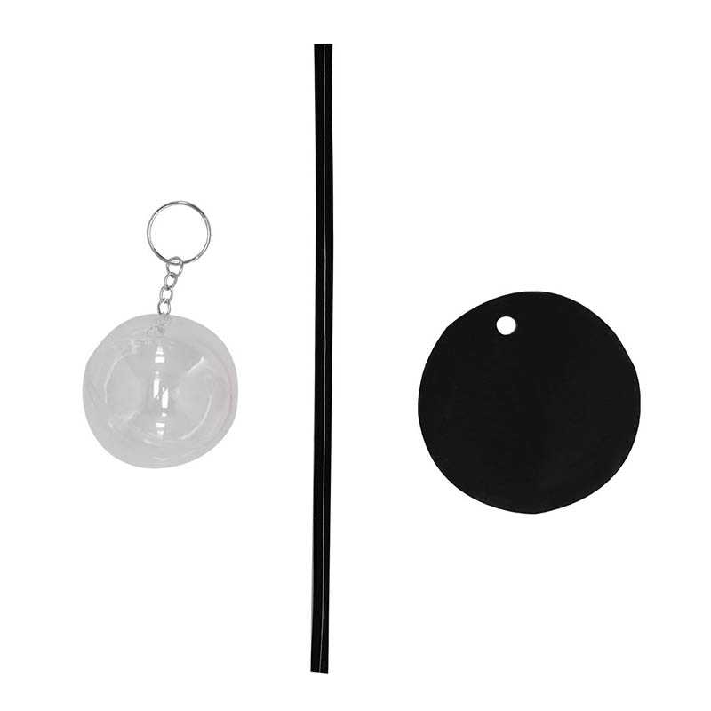 Bluetooth lokátor kľúčov s tlačidlom spúšte kamery v plastovom puzdre. Dodávané s gombíkovou batériou. Pracuje s bezplatnou aplikáciou pre iOS / Android.