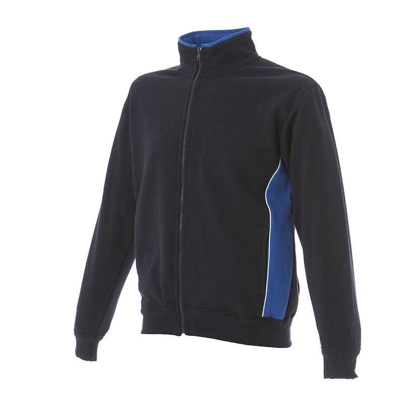 "Cotton – polyester sweater - Special dry fabric - Full zip with waterproof cover - Raglan sleeves - Two zip-pocket - Contrasting details - Colored tape inside collar - Ribbed collar, cuffs and band at waist Značka : JAMES ROSS . Materiál : Bavlna / polyes"