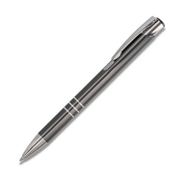 Kovové guľôčkové pero s veľkou modrou náplňou, v rôznych farbách, so strieborným klipom. Potlač umiestnime pod klip.