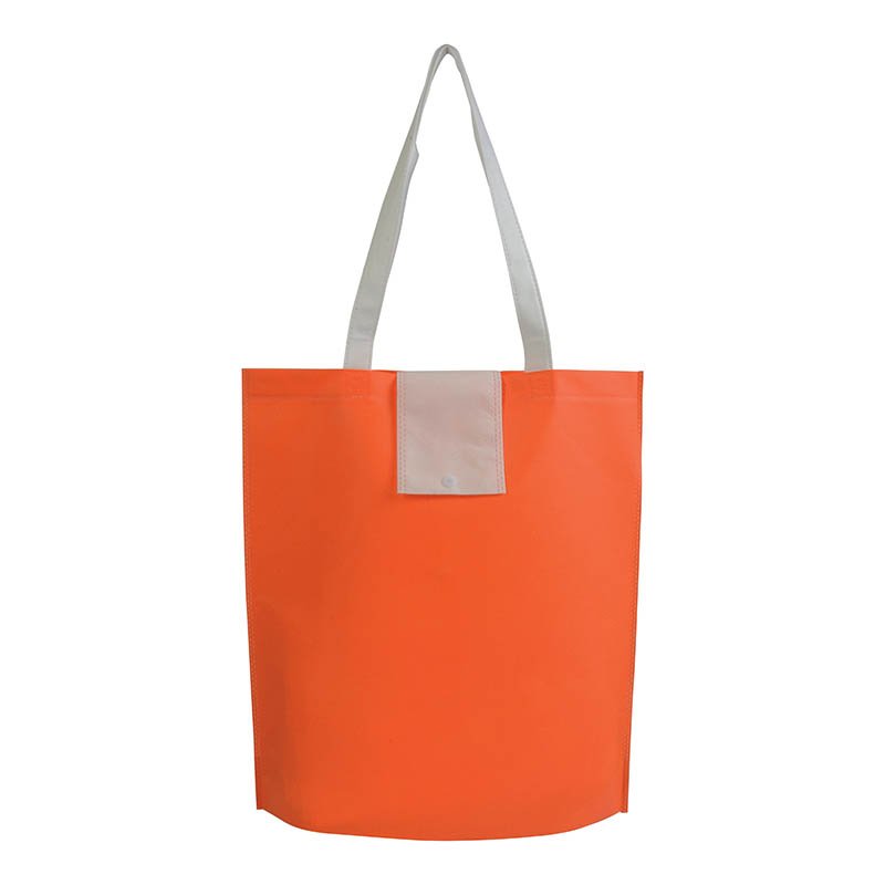 Skladacia taška z netkanej textílie s gramážou 80 g/m2, pevným krížovým prešívaním a ušami.